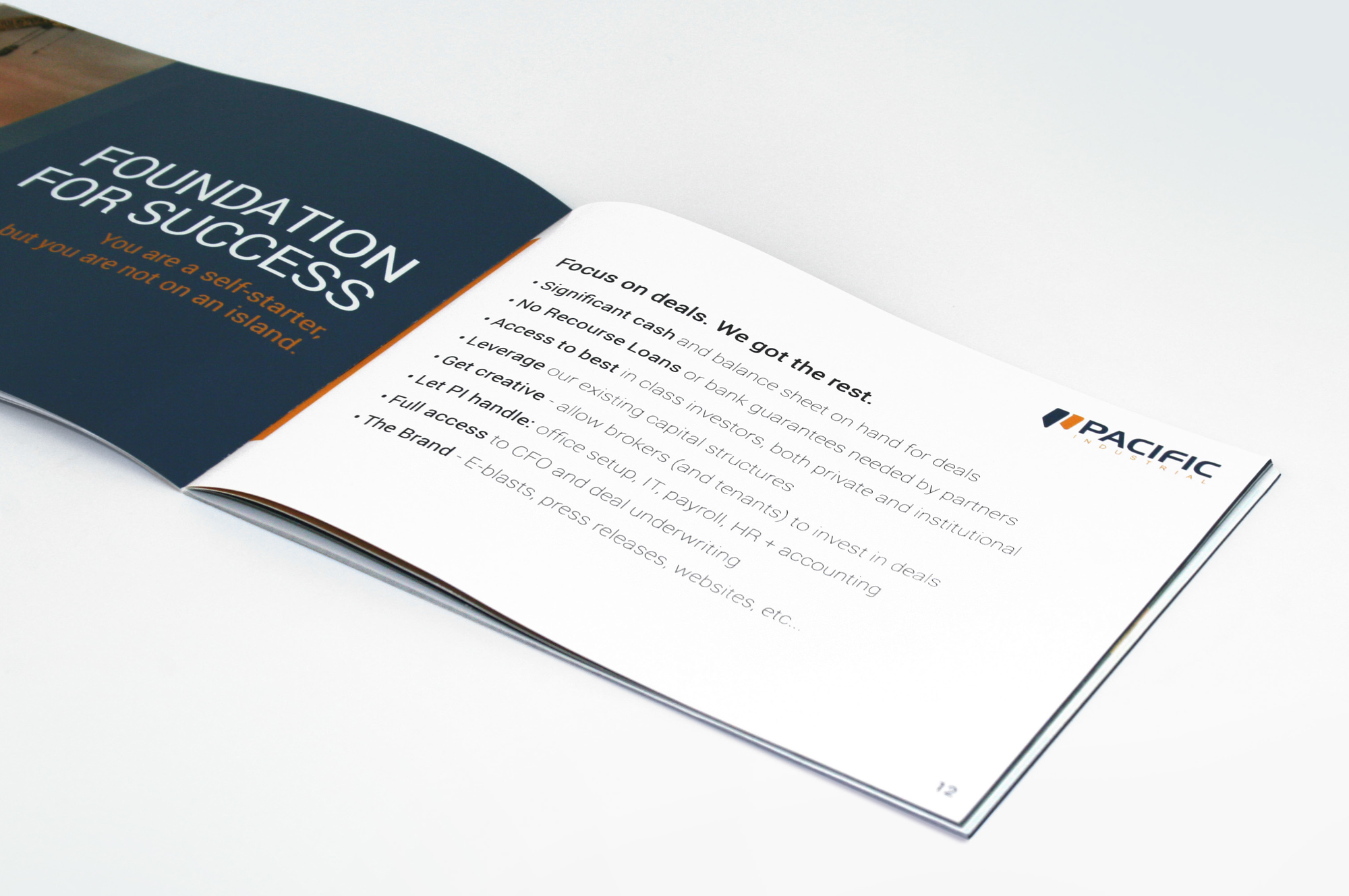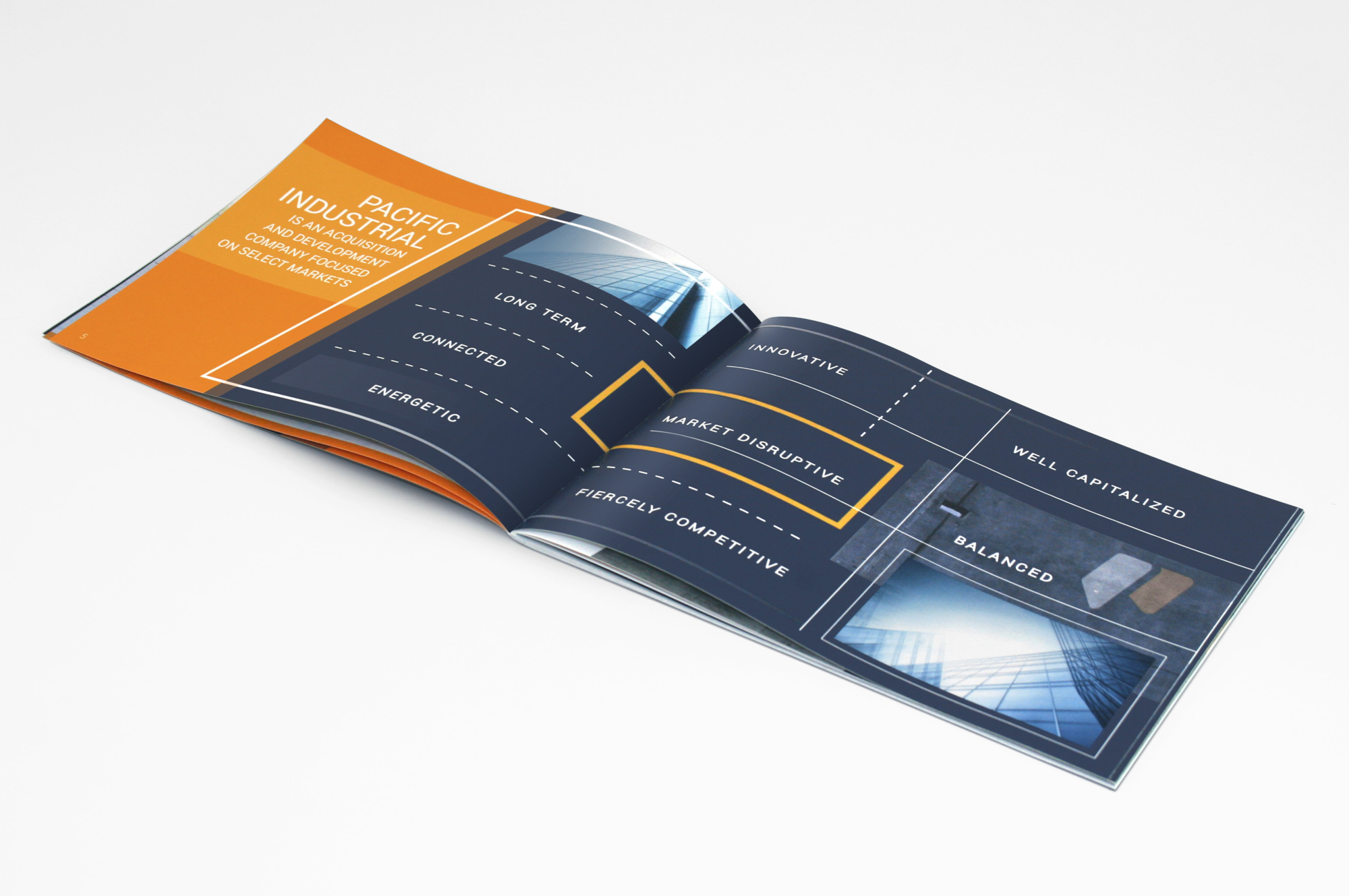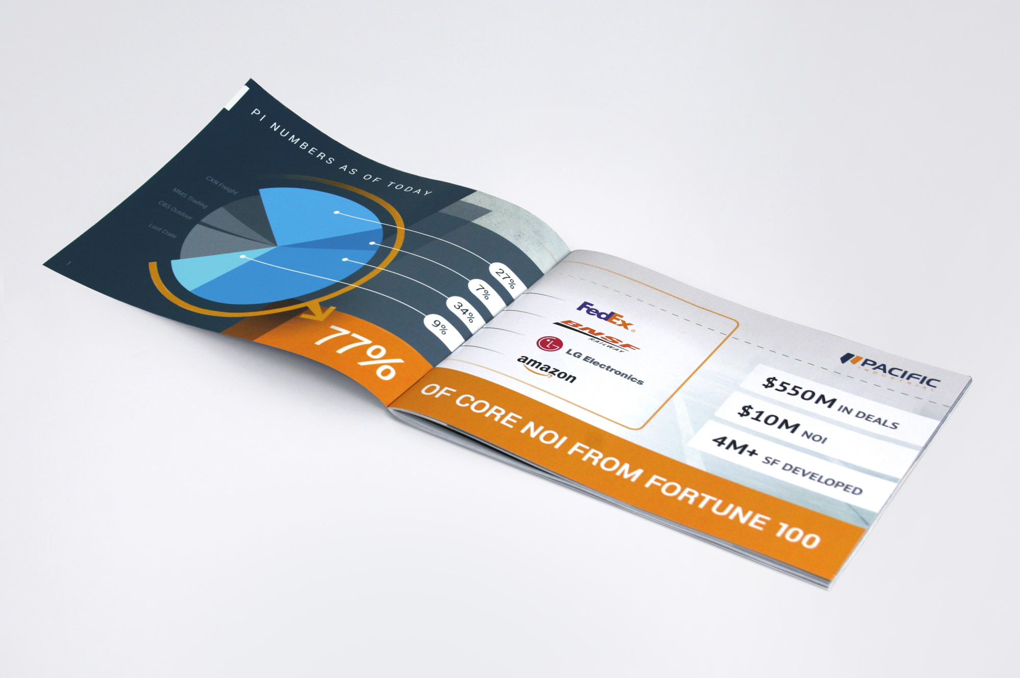 In hopes of acquiring a potential partner, Pacific Industrial requested a brochure to showcase their assets. The brochure’s intention is to demonstrate the company’s large numbers and the benefits of partnering - as well as to showcase a few of their current properties undergoing acquisition and development.